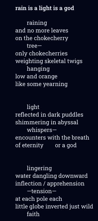 Simon’s Poem: rain is a light is a god
